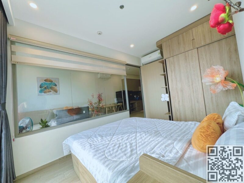 - Căn hộ được trang bị đầy đủ nội thất và tiện nghi như máy lạnh, máy giặt, máy nước nóng, máy sấy tóc, quạt máy, Tivi Smart Home, Wifi cáp quang, truyền hình cáp, dầu gội, sữa tắm, khăn tắm, kem đánh răng, và quạt máy. Có ban công nhìn ra bên ngoài để bạn có thể thư giãn và thưởng thức view.